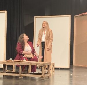 بدورها مايا يمين ، شقيقة كل من آلين لحود في المسرحية وغابريال يمين في الحياة، تثبت مرة بعد مرة أن خشبة المسرح بالنسبة اليها بيت، بيتها هي. أداءها متقن، مقنع دراميا وكوميديا، يجمع بين الصلابة والمرونة، بين الجدية والمرح، بحيث يصبح حضورها محورا يرسّخ الشخصيات ويجعل كل مشهد يتنفس بثقة وقوة.