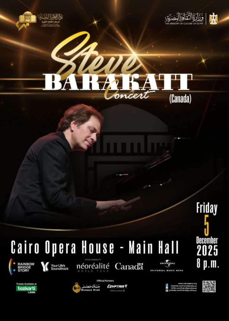 احتفالاً بمرور 71 عاماً على العلاقات الدبلوماسية بين كندا ومصر، تقيم وزارة الثقافة المصرية ودار الأوبرا المصرية حفلاً موسيقياً للمؤلف وعازف البيانو الكندي- اللبناني ستيف بركات في دار الأوبرا المصرية، إحدى أعرق الصروح الثقافية في العالم العربي ضمن جولته العالمية “Néoréalité” التي حصدت إشادات واسعة النطاق، وذلك نهار الجمعة الواقع فيه 5 كانون الأول- ديسمبر الحالي.