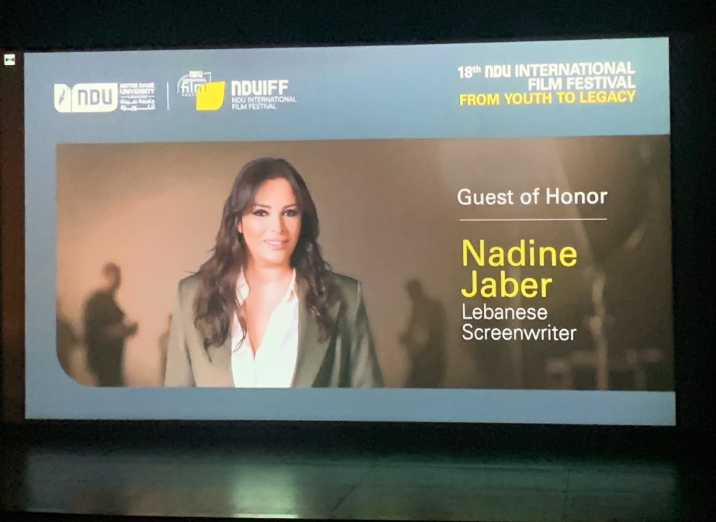 كرّم مهرجان جامعة سيدة اللويزة للأفلام القصيرة، في دورته الثامنة عشرة، الكاتبة الاستثنائية ندين جابر، ابنة الجامعة التي استطاعت خلال أحد عشر عامًا فقط أن تحجز لنفسها مكانًا بين أبرز كتّاب الدراما في لبنان والعالم العربي.