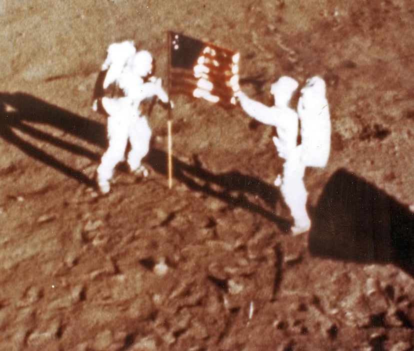 -معكم خبر؟ المشاركون الرئيسيون في هذه الرحلة 3: نيل آرمسترونغ (المهندس والطيار ورائد الفضاء، وأول من مشى على القمر) وباز ألدرين (ثاني إنسان يمشي على القمر)، ومايكل كولينز (بقي في مدار القمر داخل مركبة القيادة)