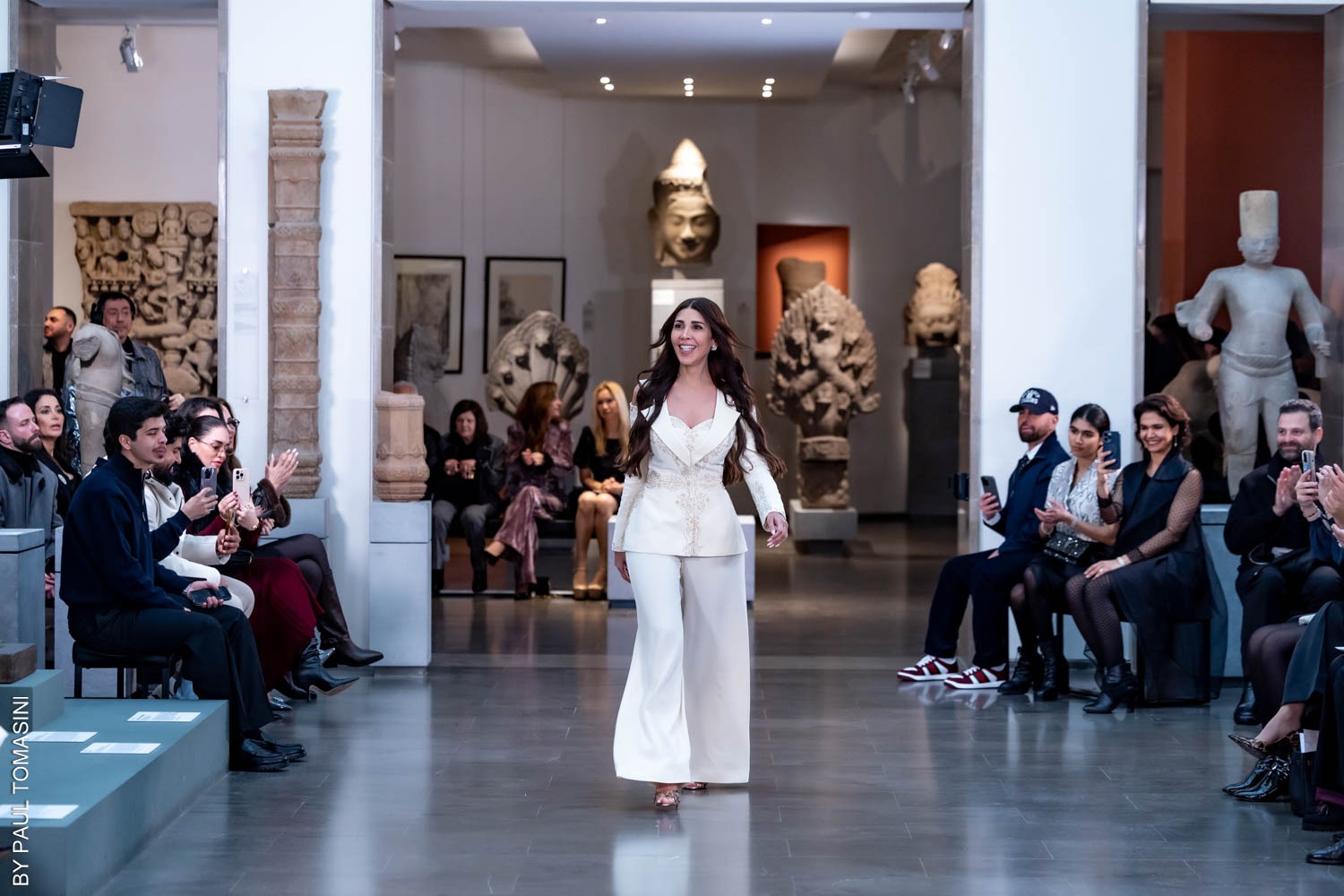 Based in Dubai, Manal Ajaj unveiled a Haute Couture collection entitled “Language of Elegance,” characterized by elegant architectural lines, luxurious fabrics, and exquisitely delicate handcrafted embroidery. The collection offers a masterful balance between contemporary aesthetics and artistic sophistication, while highlighting a modern image of the confident and assertive woman, which garnered significant attention from the fashion press and engaged the public.